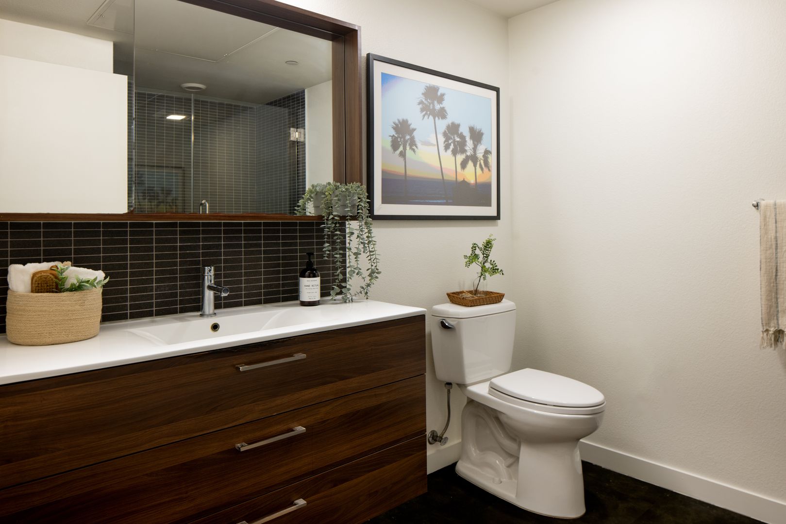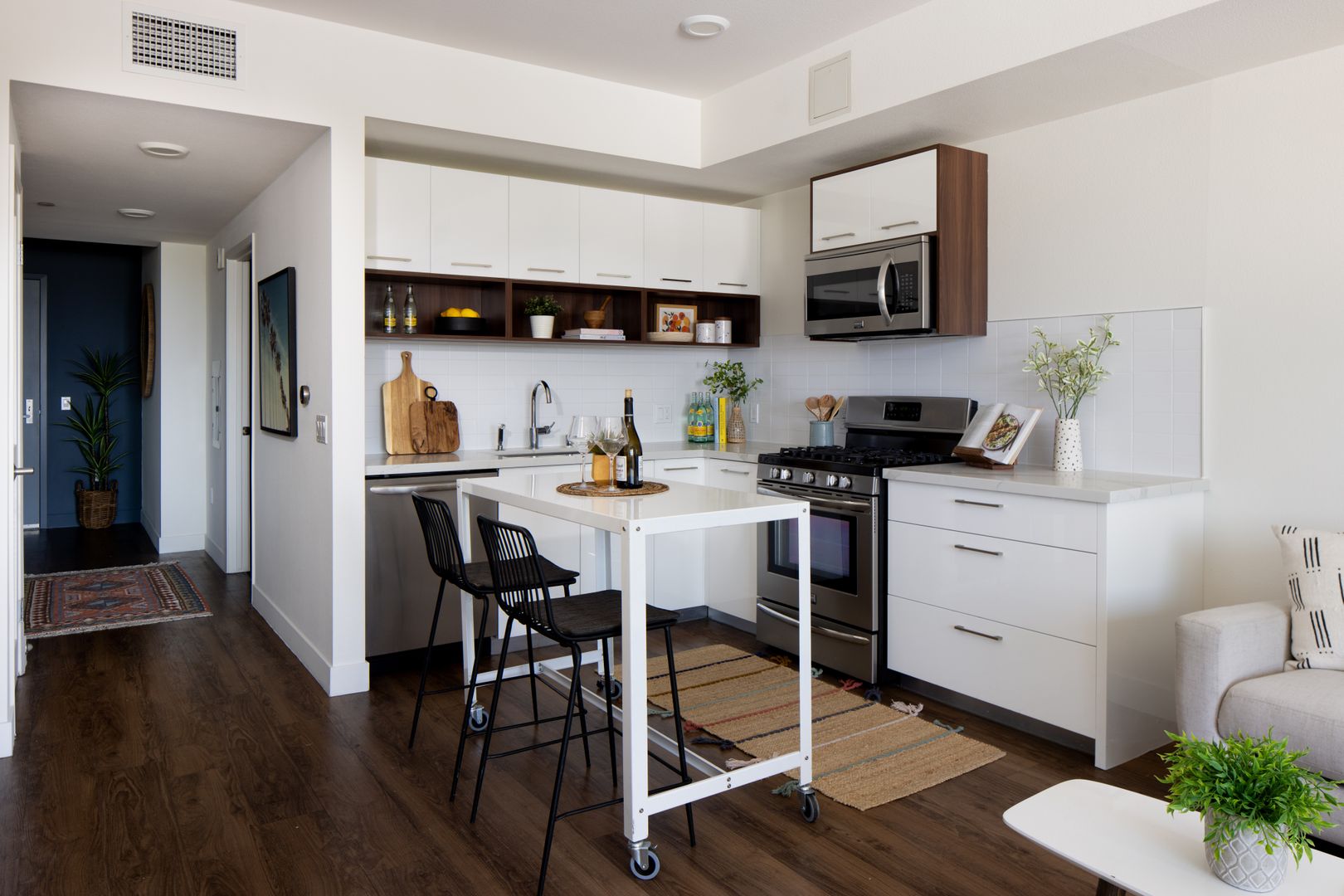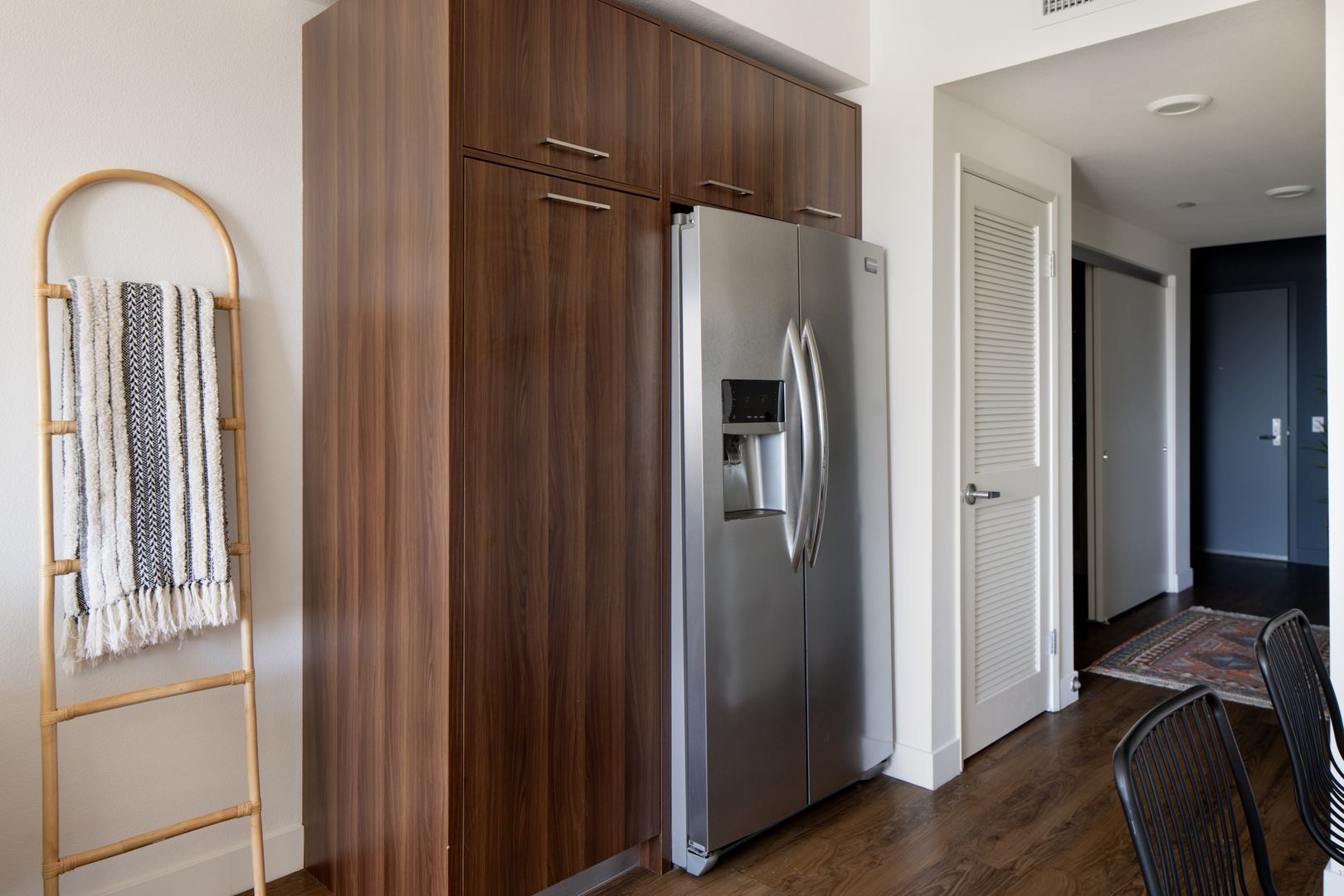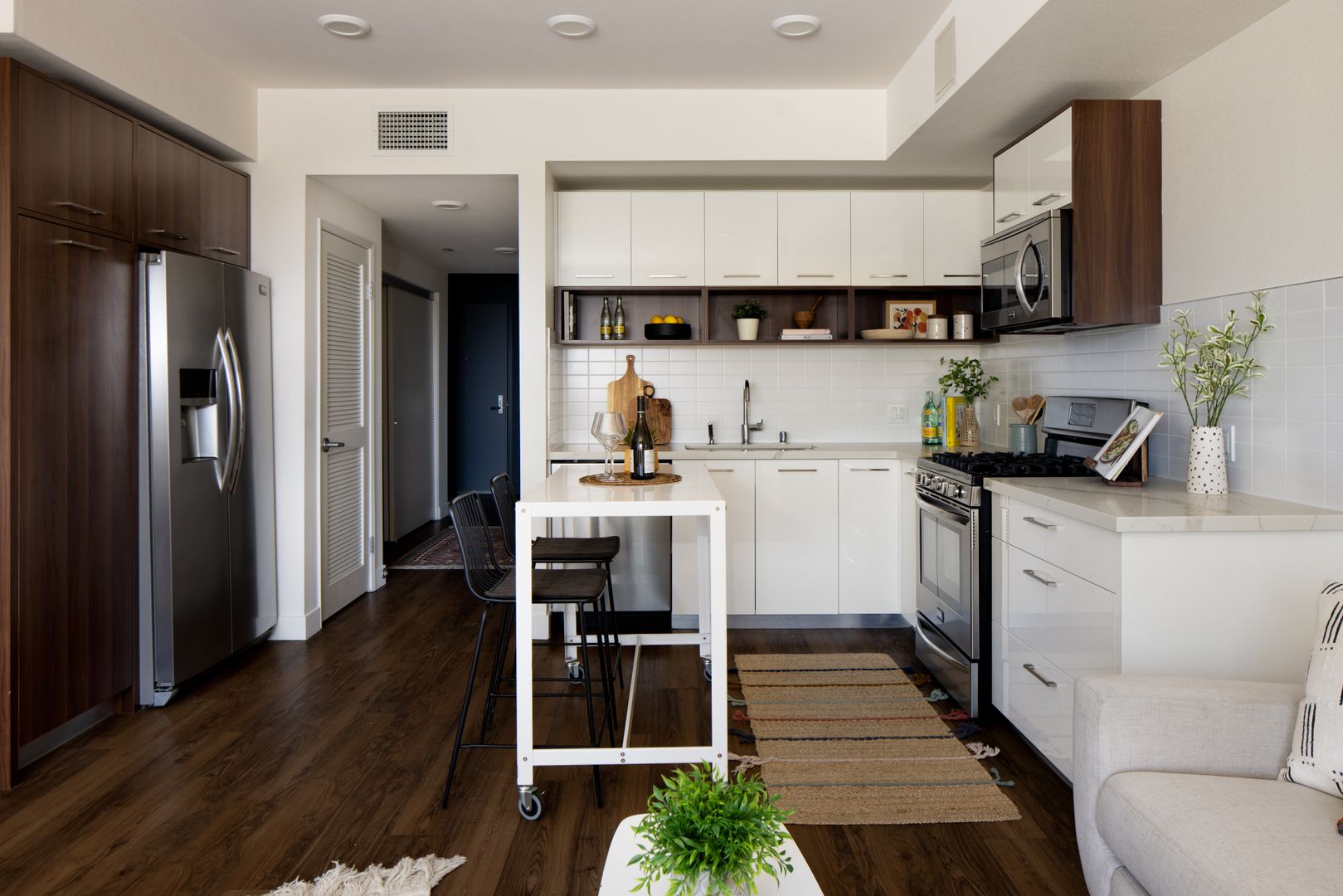 This stylish and modern studio offers the perfect combination of comfort and convenience. Featuring a full kitchen with sleek, stainless steel appliances, including a double-door refrigerator, and plenty of closet space, this studio is designed with your lifestyle in mind. Enjoy the ease of smart home living with a Nest thermostat and in-unit, front-loading washer and dryer. The spacious bathroom adds to the overall comfort, and one assigned parking space is included in a secure, gated garage. Located within walking distance to shops and restaurants, you'll have everything at your fingertips. The building also boasts top-notch amenities, including a fitness center, a community lounge perfect for gatherings, and two rooftop decks ideal for sunbathing and relaxation.